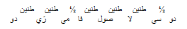هذا شيء مألوف ، كثير من الألفاظ العربية دخلت اللغة التركية والفارسية (والأوردية). لمّا بدأت الدولة العربية تضعف وتضمحلّ ٭5 ، تابع الفرس المسار العِلمي الذي أنجزه العرب ( بين القرنين 9 و 13 ) وألّفوا عدة كُتب باللغة العربية حتى بداية القرن 15 حين تركوها وتابعوا كتاباتهم بلغتهم الأصلية. وحسب عِلمنا ، كان الجُرجاني ( 1413 م ) آخر فارسي ألّف باللغة العربية وله كتاب يدخل في إطار علوم الموسيقى.
