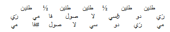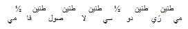 ملحوظة : مصطلح "طرب" تجدونه أعلاه مرافقا ل "ترنم" Intonation ، معناهما متقاربان لكن الطرب شيء أقوى وليس بامكاننا اعطاءكم المزيد من التوضيحات. الكل يعرف عبارة " أطربنا يا ...... " ، ومصطلح "طرب" لا يوجد مقابل له في الغرب لأن الطرب أصلا لا وجود له في موسيقاهم . وفي نظرنا الوسيلة/الطريقة الوحيدة التي سوف توضح لكم "الطرب" هي أن نسمع نغمة من مقام غربي (دياتوني) تليها نغمة من مقام عربي/شرقي يحتوي على ربع طنين. الأمثلة كثيرة : "يا مسافر وحدك" لِ محمد عبد الوهاب ، "ليلي الأنس في ڨيينا" لِ اسمهان .....