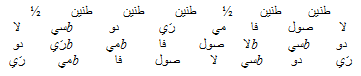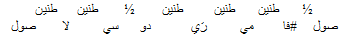 ونصِل إلى أهم شيء في الموسيقى/الغناء ( لدى المستمع ) ، أي الترنّم Intonation إينتوناسيون ( أو الطرب/ الإطراب ، انظر الملحوظة أسفله) الذي سنتطرق إليه مرارا في هذا الكتاب ( موازاة مع التوافق ). الترنم هو ما يفرّق بين الغناء ( أو الموسيقى ) من جهة والكلام العادي أو الضجيج من جهة أخرى. فالغناء مقسم إلى أجزاء يضبطها الميزان/الإيقاع ، وكل جزء (حقل/ميزورة mesure/bar ) يتكون من لحظات ( أو نقرات ) قوية temps fort وأخرى ضعيفة temps faible ( أو خالية ) ، والصوت يعلو وينخفض ، وتتناوب لحظات التوتر والسكينة ، ولولا هذا التناوب لكان الغناء رتيبا monotone أو لم يكن هناك غناء بتاتا.