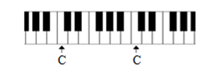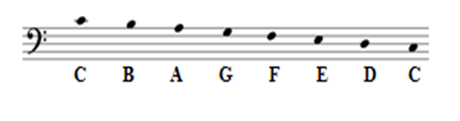 The C note on the ledger low line (under the staff) corresponds to C in the middle of the piano, and the notes above cover roughly the keys on the right. To display low sounds and voices (keys on the left), a second set of parallel lines begins at this C note downwards, it is bass clef :