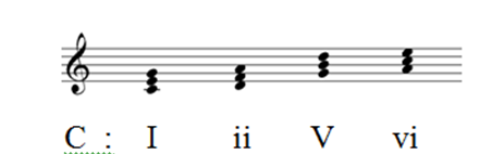 If we are inside a known tonality, C major for instance, the chords may be expressed by their rank with roman numerals : capital letters for major and small ones for minor :