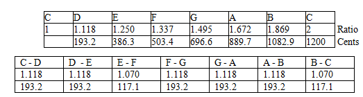 On summarizing, for any couple of notes forming a whole tone : X → Y = 203.9 cents