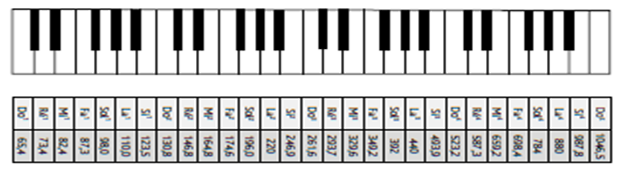 It is a set of sounds, expressed in the form of notes, laid on steps/degrees of a scale. These notes (and others) are used for making music : composing, playing and singing.They begin with a low one (whose frequency is low) which represents the tonic/root and go sharp gradually terminating with the octave which sounds in great harmony with the root. We’ll return later (IV) to the acoustical reasons which have imposed these notes, their number and pitch (pitch being the music term for frequency) and the way they are arranged.